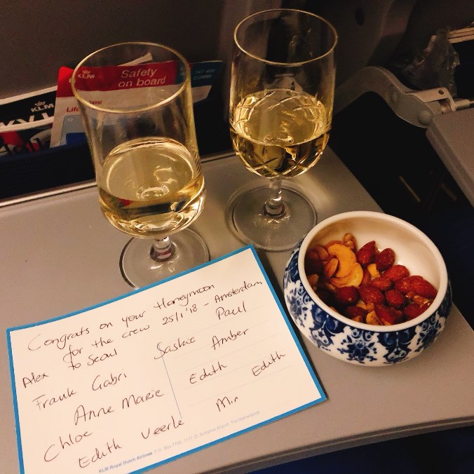 항공은 KLM 이코노미 컴포트로 이용했구요. 올때와 갈때 기내에서 허니문 샴페인과 축하 메세지를 전달해 주셔서 정말 기분이 좋았습니다.