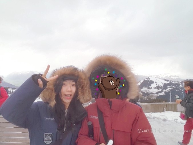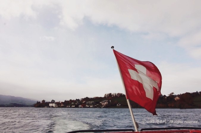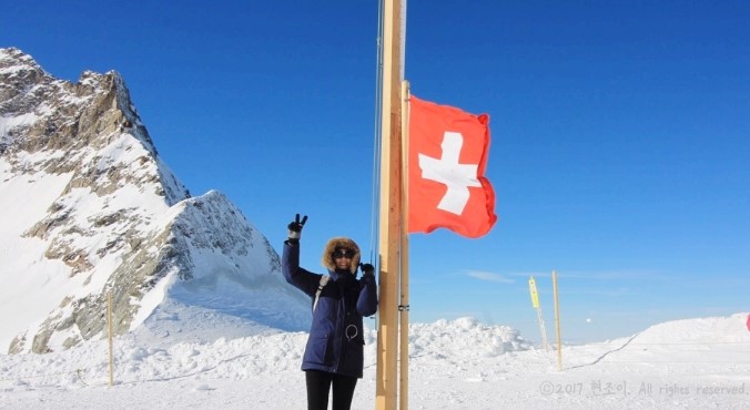 해가 쨍쨍 눈이 부시고, 춥고 스위스 국기는 너무 이쁘고
