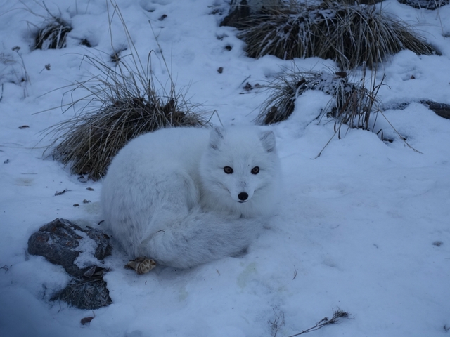 야생동물관찰투어 중에 북극여우를 만났어요! 세상에... 북극여우라니~ 언제 이렇게 직접 마주해볼 수 있겠어요? 이 지역은 주민 수보다 야생동물 수가 더 많데요.