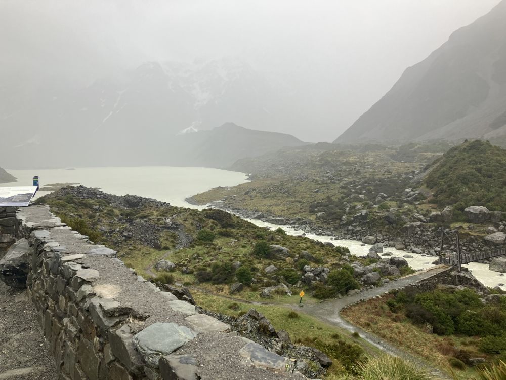 후커밸리 트래킹도 난이도가 높지 않아서 여유롭게 걸을 수 있었고, 비가 많이 와서 구름다리를 건너지는 않았지만, 충분히 만족스러웠어요. 마운트쿡을 보는 순간마다 감탄이 절로 나왔어요.