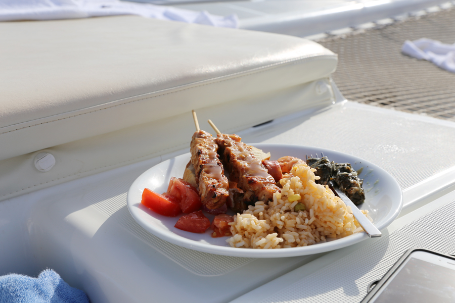 바다수영을 즐긴 뒤에는 요트안에서 직접 고기를 구워주었고, 같이 먹을 수 있는 샐러드바도 준비되어 있었습니다.